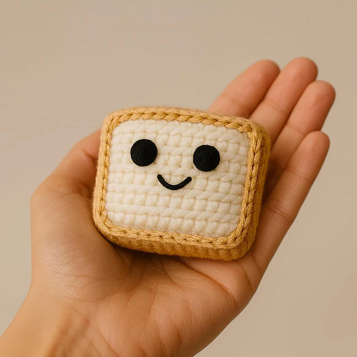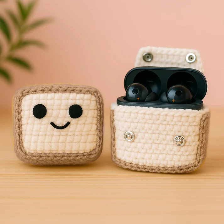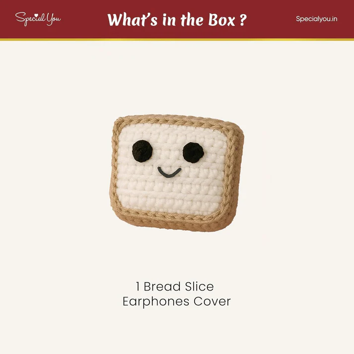 • Adorable Bread-Shaped Crochet Earphone Case – Handmade mini pouch with cute bread design – perfect for storing earphones, AirPods, small jewelry, or coins.