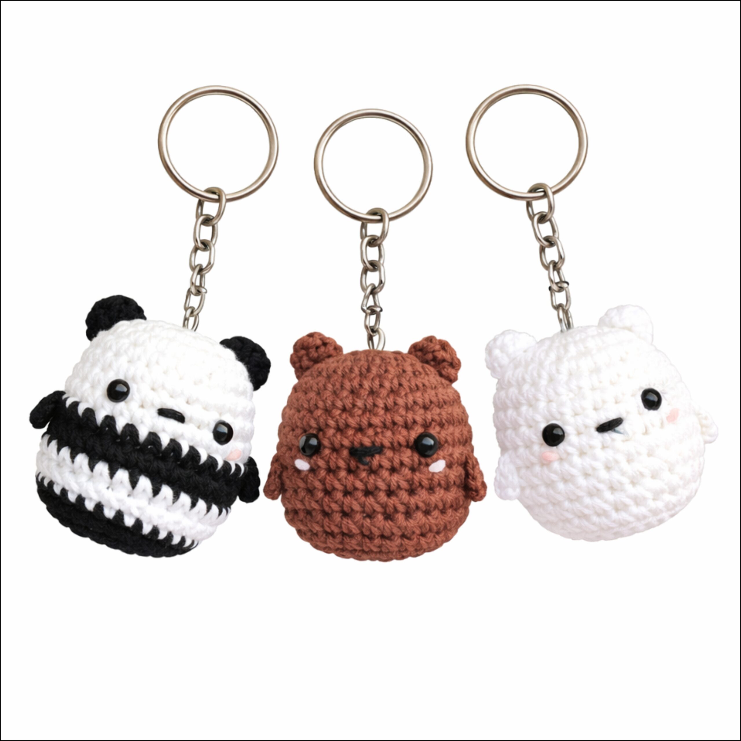 Add a dose of handcrafted cuteness to your everyday essentials with our Handmade Crochet Animal Keychain Set. This adorable collection features three lovingly hand-crocheted designs – a panda, a brown bear, and a white bear, each crafted with premium yarn and detailed stitching.
