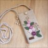 Handmade Crochet Floral Mobile Sling Pouch – Beige