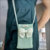 Handmade Crochet Phone Sling Bag – Mint Green Crossbody with Bow – Cute Crochet Mini Bag – Lightweight Phone Pouch | Knit & Bloom