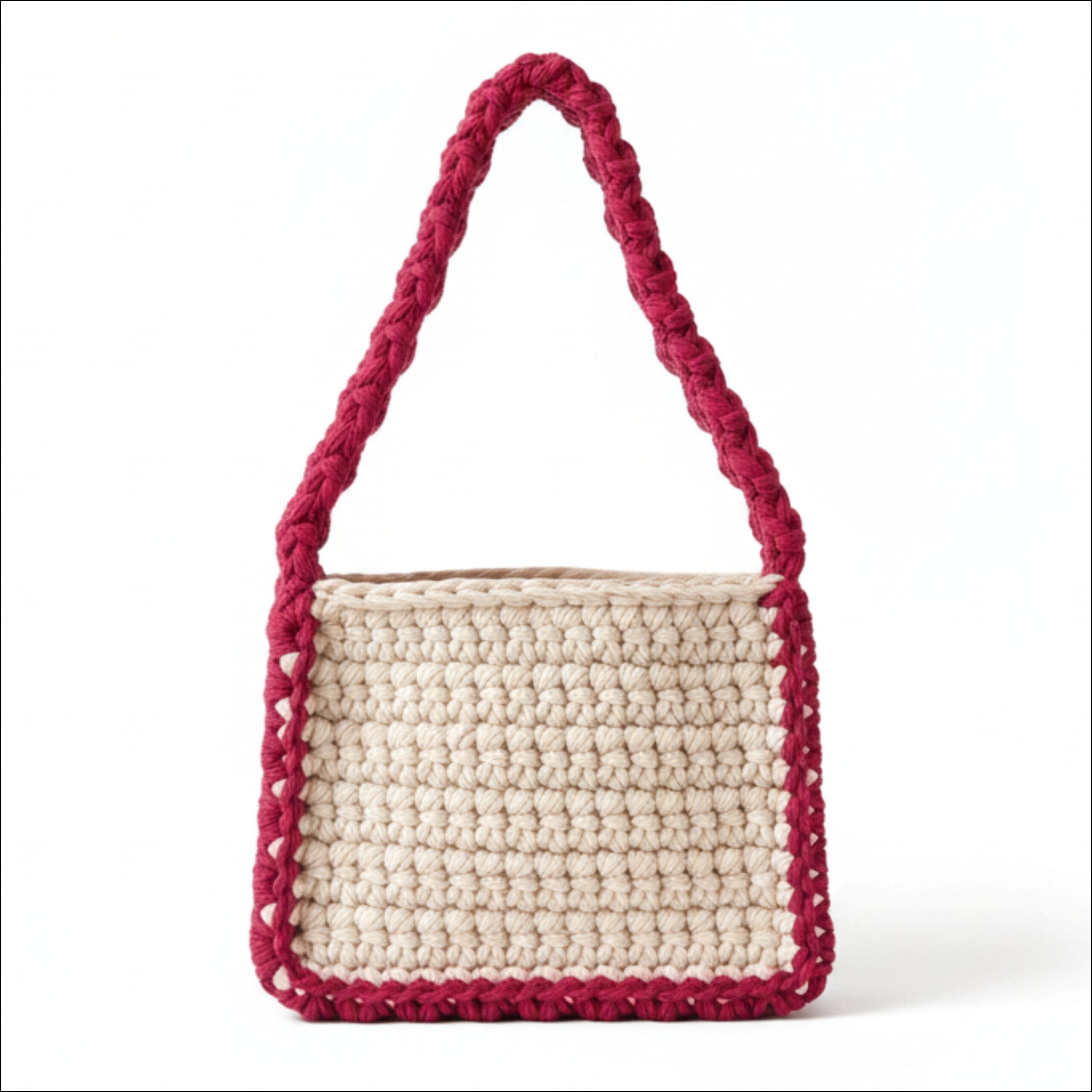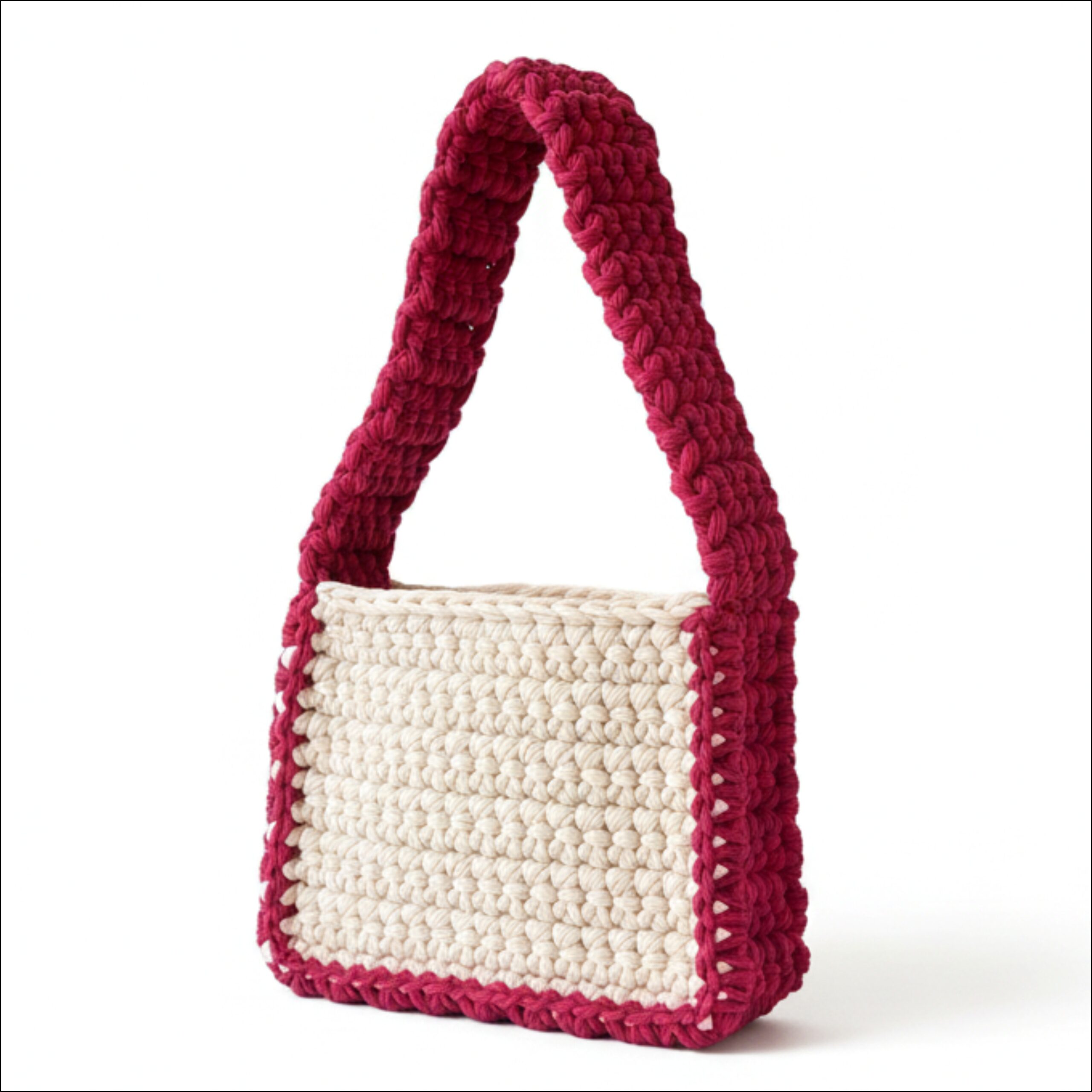 Add a touch of handcrafted elegance to your everyday look with this Handmade Crochet Shoulder Bag from Knit & Bloom. Designed with a beautiful cream base and contrasting maroon crochet border and handle, this bag blends simplicity with artisanal charm. Perfect for casual outings, shopping, or brunch dates.